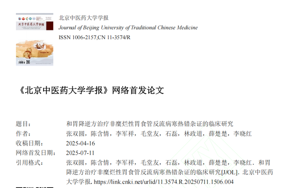 Tên gốc : 和胃降逆方治疗非糜烂性胃食管反流病寒热错杂证的临床研究